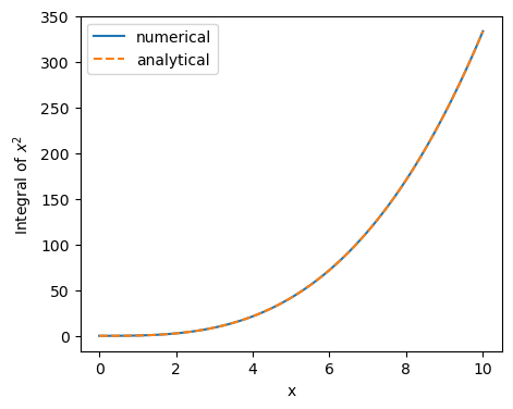 plt.ylabel('Integral of $x^2$')